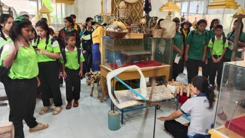 🩵วันที่ ๑๘ กันยายน ๒๕๖๘ เวลา ๐๙.๓๐ น. ส่วนงานพัฒนาชุมชนในศูนย์ศึกษาการพัฒนาเขาหินซ้อนอันเนื่องมาจากพระราชดำริ จังหวัดฉะเชิงเทรา ให้การต้อนรับคณะครูและนักเรียนจากโรงเรียนไทยรัฐวิทยา ๓ (บ้านลาดตะเคียน) อำเภอกบินทร์บุรี จังหวัดปราจีนบุรี จำนวน ๖๐ คน เข้าศึกษาดูงานในฐานการเรียนรู้งานศิลปาชีพตามแนวพระราชดำริ โดยมี นางสาวจิดาภา ท่าหิน นักวิเคราะห์นโยบายและแผน บรรยายภารกิจของส่วนงานพัฒนาชุมชนในศูนย์ศึกษาการพัฒนาเขาหินซ้อนฯ และแนะนำผลิตภัณฑ์จักสานแฮนด์เมดที่นำมาจัดแสดงประกอบด้วย กระเป๋า หมวก เสื่อกก เป็นต้น จากนั้น นำคณะฯ ชมการสาธิตการจักสานและทอเสื่อจากเส้นใยพืช การทอผ้า การเดินเส้นทอง การตีเหล็ก และบ้านพอเพียง พร้อมถ่ายภาพหมู่ที่ระลึกกับพลายดินดี🦣