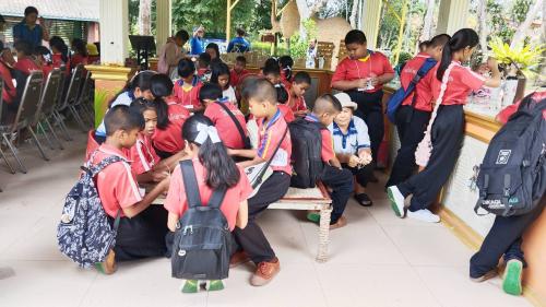 🩵วันที่ ๑๙ กันยายน ๒๕๖๘ เวลา ๑๐.๓๐ น. ส่วนงานพัฒนาชุมชนในศูนย์ศึกษาการพัฒนาเขาหินซ้อนอันเนื่องมาจากพระราชดำริ จังหวัดฉะเชิงเทรา ให้การต้อนรับคณะครูและนักเรียนจากโรงเรียนบ้านท่าเลียบ อำเภอสนามชัยเขต จังหวัดฉะเชิงเทรา จำนวน ๘๔ คน เข้าเยี่ยมชมผลงานด้านศิลปาชีพตามแนวพระราชดำริ ของส่วนงานพัฒนาชุมชนในศูนย์ศึกษาการพัฒนาเขาหินซ้อนฯ โดยมี นางสาวจิดาภา ท่าหิน นักวิเคราะห์นโยบายและแผน กล่าวต้อนรับและบรรยายภารกิจส่วนงานพัฒนาชุมชนในศูนย์ศึกษาการพัฒนาเขาหินซ้อนฯ การใช้ประโยชน์จากหญ้าแฝก ในการต่อยอดพัฒนาเป็นผลิตภัณฑ์ เป็นการสร้างอาชีพ สร้างรายได้ให้แก่ผู้มาศึกษาดูงาน และผู้ที่สนใจ พร้อมนำชมผลิตภัณฑ์จากหญ้าแฝกที่จัดแสดงไว้ จากนั้นคณะฯ ได้ร่วมทำพวงกุญแจจากหญ้าแฝก โดยมีทีมวิทยากรงานศิลปาชีพฯ ให้การฝึกสอนและแนะนำ สร้างความพึงพอใจให้กับคณะฯ ที่ได้รับพวงกุญแจจากหญ้าแฝกเป็นของที่ระลึก พร้อมถ่ายภาพหมู่ที่ระลึกกับช้างพลายดินดี
