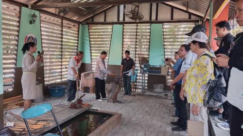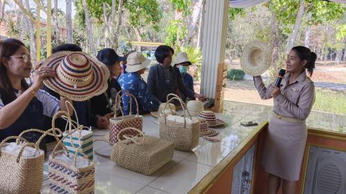 วันที่ ๒๖ มกราคม ๒๕๖๙ เวลา ๑๑.๐๐ น. ส่วนงานพัฒนาชุมชนในศูนย์ศึกษาการพัฒนาเขาหินซ้อนอันเนื่องมาจากพระราชดำริ จังหวัดฉะเชิงเทรา ให้การต้อนรับคณะบุคคลจากสำนักงานเทศบาลเมืองบางรักพัฒนา อำเภอบางบัวทอง จังหวัดนนทบุรี จำนวน ๖๐ คน เข้าศึกษาดูงานในฐานการเรียนรู้งานศิลปาชีพตามแนวพระราชดำริ โดยมี นางสาวนฤมล พูนประชา นักวิชาการพัฒนาชุมชนปฏิบัติการ บรรยายภารกิจของส่วนงานพัฒนาชุมชนในศูนย์ศึกษาฯ และแนะนำผลิตภัณฑ์จักสานแฮนด์เมดที่นำมาจัดแสดงประกอบด้วย กระเป๋า หมวก เสื่อกก เป็นต้น จากนั้น นำคณะฯ ชมสาธิตการจักสานและทอเสื่อจากเส้นใยพืช การทอผ้า การเดินเส้นทอง การตีเหล็ก และบ้านพอเพียง พร้อมถ่ายภาพร่วมกันกับช้างพลายดินดี