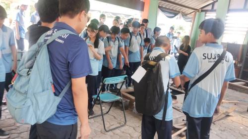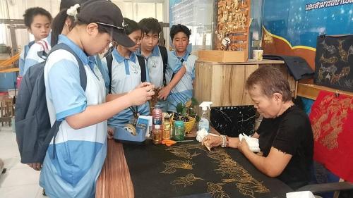 วันที่ ๑๙ กุมภาพันธ์ ๒๕๖๙ เวลา ๑๐.๐๐ น. ส่วนงานพัฒนาชุมชนในศูนย์ศึกษาการพัฒนาเขาหินซ้อนอันเนื่องมาจากพระราชดำริ จังหวัดฉะเชิงเทรา ให้การต้อนรับคณะครูและนักเรียนระดับมัธยมศึกษาตอนต้นจากโรงเรียนสุจิปุลิ อำเภอบ้านโพธิ์ จังหวัดฉะเชิงเทรา จำนวน ๔๘ คน เข้าศึกษาดูงานในฐานการเรียนรู้งานศิลปาชีพตามแนวพระราชดำริ โดยมี นางสาวจิดาภา ท่าหิน นักวิเคราะห์โยบายและแผน บรรยายภารกิจของส่วนงานพัฒนาชุมชนในศูนย์ศึกษาฯ และแนะนำผลิตภัณฑ์จักสานแฮนด์เมดที่นำมาจัดแสดงประกอบด้วย กระเป๋า หมวก เสื่อกก เป็นต้น จากนั้น นำคณะฯ ชมสาธิตการจักสานและทอเสื่อจากเส้นใยพืช การทอผ้า การเดินเส้นทอง การตีเหล็ก และบ้านพอเพียง พร้อมถ่ายภาพร่วมกันกับช้างพลายดินดี