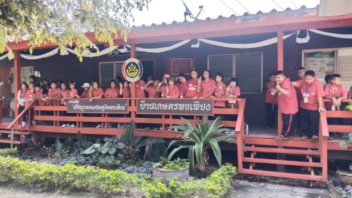วันที่ ๒๐ กุมภาพันธ์ ๒๕๖๙ เวลา ๑๐.๓๐ น. ส่วนงานพัฒนาชุมชนในศูนย์ศึกษาการพัฒนาเขาหินซ้อนอันเนื่องมาจากพระราชดำริ จังหวัดฉะเชิงเทรา ให้การต้อนรับคณะครูและนักเรียนระดับประถมศึกษาปีที่ ๑ - ๖ จากโรงเรียนเทศบาล ๒ อำเภอพนัสนิคม จังหวัดชลบุรี จำนวน ๖๐ คน เข้าศึกษาดูงานในฐานการเรียนรู้งานศิลปาชีพตามแนวพระราชดำริ โดยมี นางสาวจิดาภา ท่าหิน นักวิเคราะห์โยบายและแผน บรรยายภารกิจของส่วนงานพัฒนาชุมชนในศูนย์ศึกษาฯ และแนะนำผลิตภัณฑ์จักสานแฮนด์เมดที่นำมาจัดแสดงประกอบด้วย กระเป๋า หมวก เสื่อกก เป็นต้น จากนั้น นำคณะฯ ชมสาธิตการจักสานและทอเสื่อจากเส้นใยพืช การทอผ้า การเดินเส้นทอง การตีเหล็ก และบ้านพอเพียง พร้อมถ่ายภาพร่วมกันกับช้างพลายดินดี