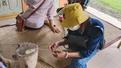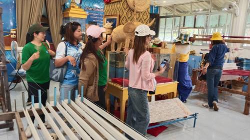 🩵วันที่ ๒๕ กันยายน ๒๕๖๘ เวลา ๑๔.๐๐ น. ส่วนงานพัฒนาชุมชนในศูนย์ศึกษาการพัฒนาเขาหินซ้อนอันเนื่องมาจากพระราชดำริ จังหวัดฉะเชิงเทรา ให้การต้อนรับคณะฝ่ายอนุรักษ์ทรัพยากรน้ำจืด องค์กรกองทุนสัตว์ป่าโลกสากล สำนักงานประเทศไทย (องค์กร WWF Thailand) กลุ่มผู้ใช้น้ำตำบลบางแตนและตำบลบางยาง อำเภอบ้านสร้าง จังหวัดปราจีนบุรี จำนวน ๓๕ คน เข้าศึกษาดูงานในฐานการเรียนรู้งานศิลปาชีพตามแนวพระราชดำริ โดยมี นางสาวจิดาภา ท่าหิน นักวิเคราะห์นโยบายและแผน บรรยายภารกิจของส่วนงานพัฒนาชุมชนในศูนย์ศึกษาการพัฒนาเขาหินซ้อนฯ และแนะนำผลิตภัณฑ์จักสานแฮนด์เมดที่นำมาจัดแสดงประกอบด้วย กระเป๋า หมวก เสื่อกก เป็นต้น จากนั้น นำคณะฯ ชมการสาธิตการจักสานและทอเสื่อจากเส้นใยพืช การทอผ้า การเดินเส้นทอง ฐานการตีเหล็ก และฐานบ้านพอเพียง